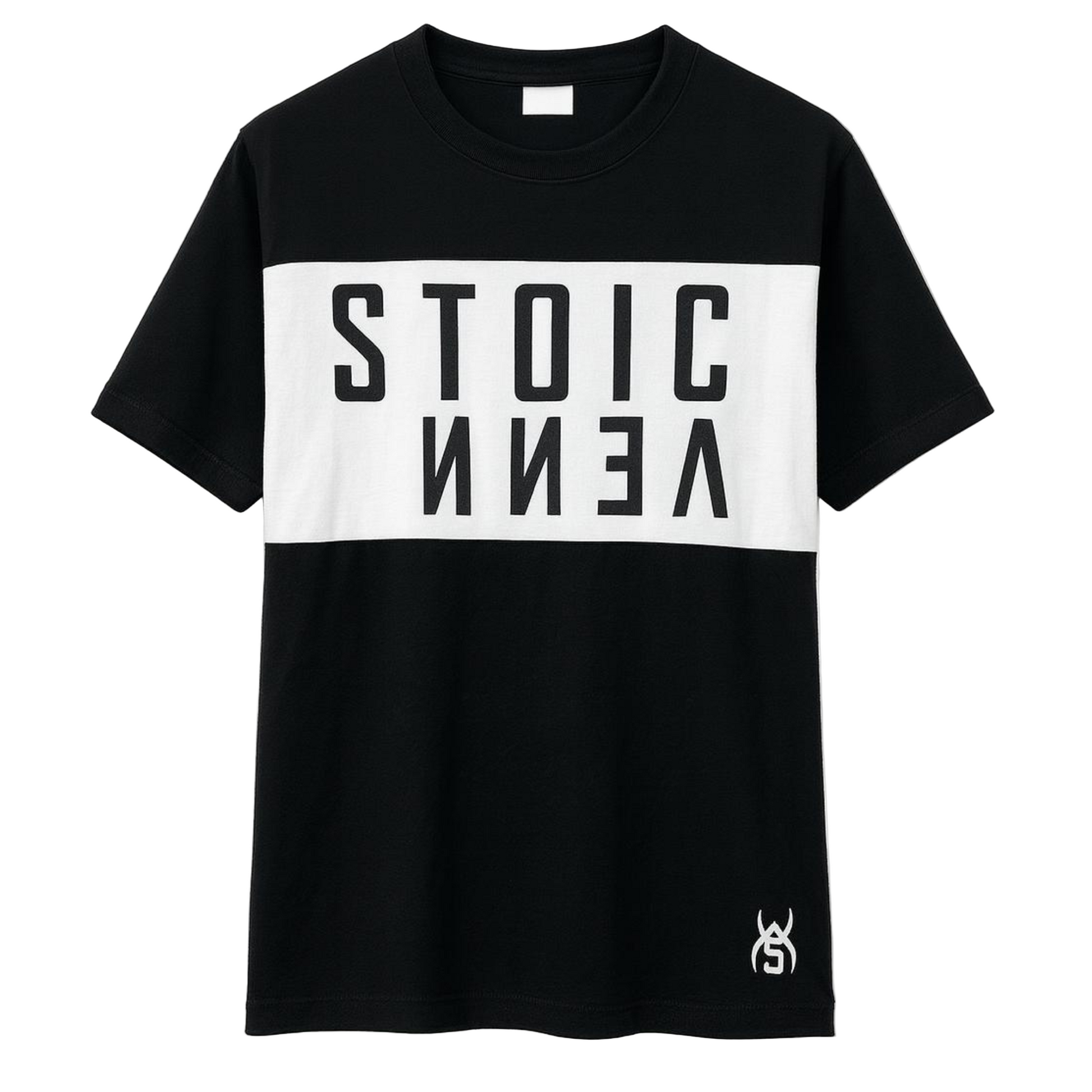 A Monochrome core Tee (100% cotton) statement of resilience. Featuring bold dual-panel contrast and sharp-lined branding, this tee channels discipline and control. Designed for the few who walk against the grain. Not louder, just stronger.
